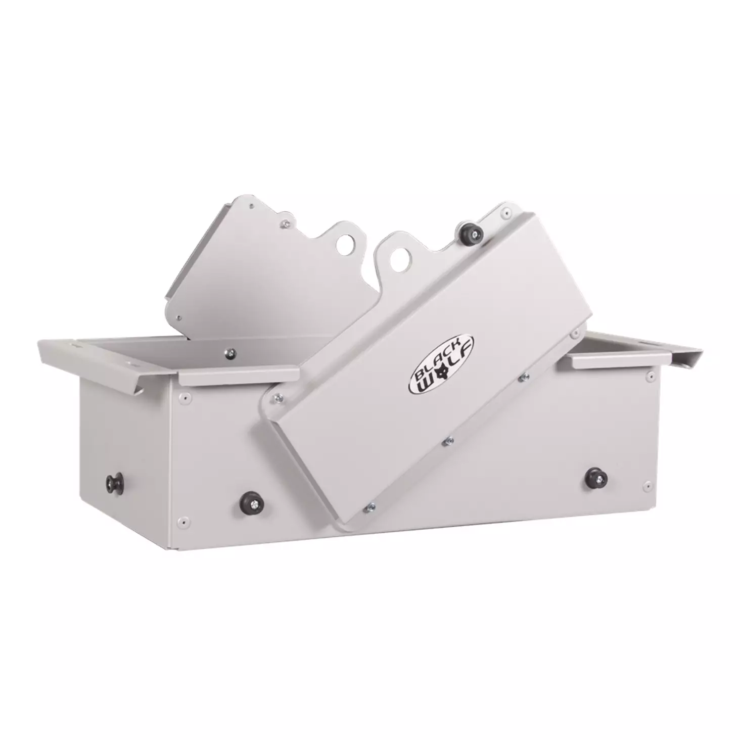 Black Wolfin moottorisahateline/laatikko on täydellinen ratkaisu metsätyövälineiden kuljettamiseen mönkijällä. Moottorisahoja on kätevää ja turvallista kuljettaa laatikon kahdessa telineessä, samalla kun öljyt, polttoaineet ja muut työvälineet kulkevat tilavassa laatikossa.